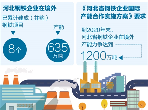 此外,着眼于促进钢铁产业结构调整,河北省有关部门日前印发了《河北省钢铁企业国际产能合作实施方案》,推动河北省钢铁企业开展境外投资,带动装备、技术、品牌“走出去”,打造国际产能合作新样板。按照方案提出的目标,到2020年末,河北省钢铁企业在境外产能力争达到1200万吨;在境外初步形成以生产基地(产业园区)为龙头,以关联产业相配套,以上下游产业相衔接的海外钢铁布局。