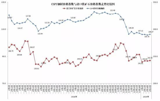 据钢铁协会监测,2月1日,中国钢材价格指数(CSPI)为106.77点,比去年12月末下降0.35点,降幅为0.33%。从今年以来各周情况看,钢材价格呈窄幅波动走势。据国家统计局数据,12月中国制造业采购经理(PMI)为49.5%,比上月上升0.1个百分点,连续两月低于临界点,显示国民经济下行压力较大,下游行业用钢需求难以持续增长,目前仍处于钢材消费淡季,钢材价格仍将以小幅波动为主。后期铁矿石价格难以持续上涨,将呈理性回归走势。